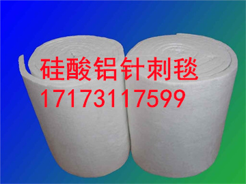 硅酸铝甩丝针刺毯:是在生产甩丝过程中,加入一定的辅料,经布棉沉降、整形针刺(把纤维采用针刺加强的方法,使纤维相互勾织,制成的柔性毯状制品)、高温定型、纵横切割、称重打包等工序而成。特别我公司的双面针刺工艺,使产品质量远远高于普通针刺毡。